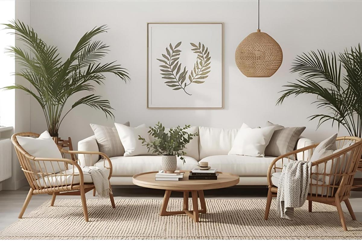 ウッドやラタンなど、自然素材の家具と相性がよく、やわらかな統一感を生みます。