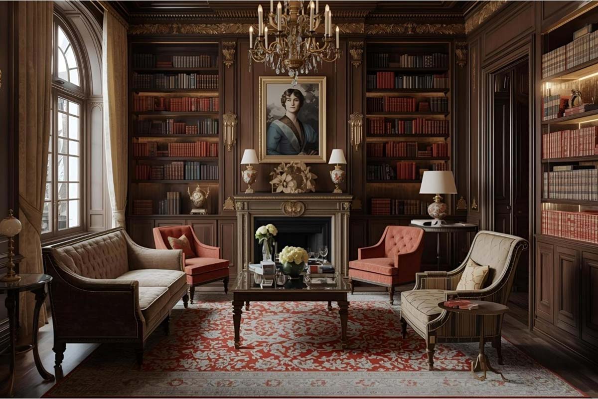 クラシカルインテリアは、中世ヨーロッパの宮廷を思わせる上品で格式あるテイストです。曲線を描く家具やシャンデリア、金の装飾がアクセントとなり、空間に華やかさと重厚感を与えます。