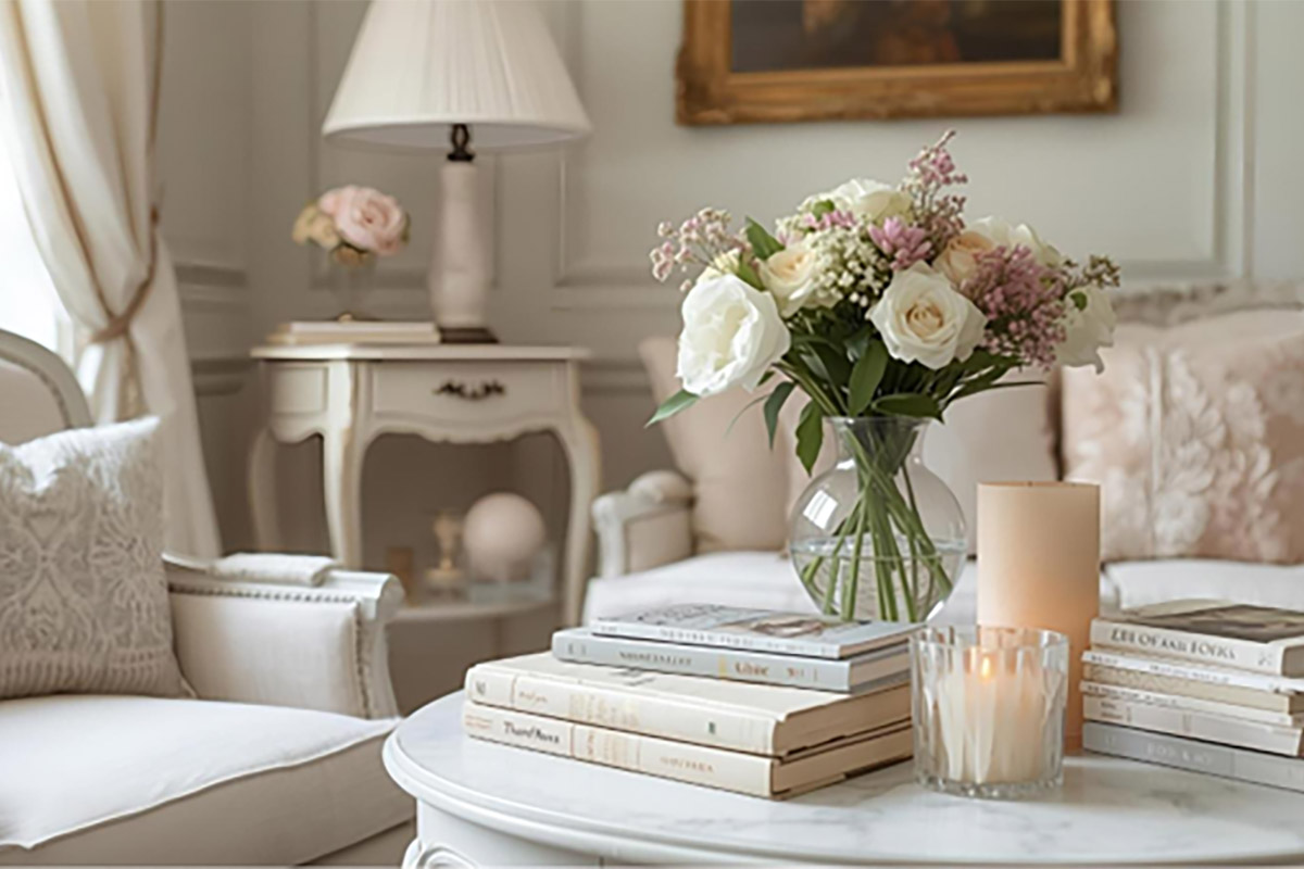 フレンチスタイルインテリアは、優雅でありながら軽やかさを感じるテイストです。白やペールグレー、くすんだブルーなどの淡い色合いを基調とし、曲線的な家具やレース、リネン素材を組み合わせます。