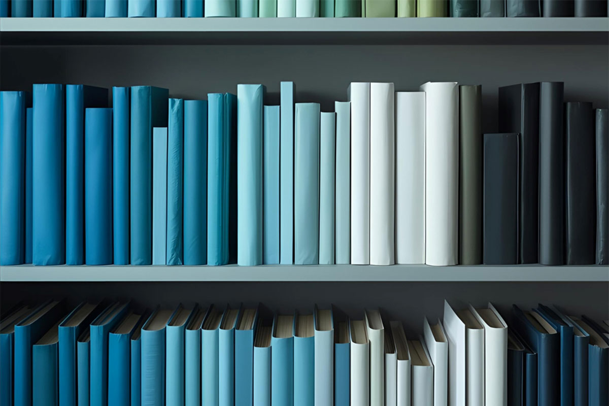 本の色味がバラバラだと、棚に入れたときに雑多に見えてしまうことがあります。