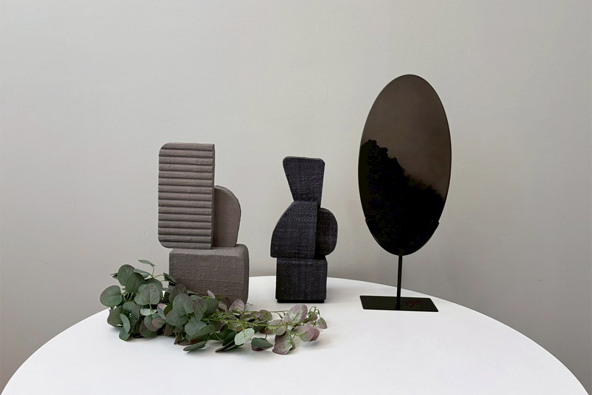 素材が持つ穏やかな風合いと特徴的なフォルムが組み合わさることで、落ち着いた雰囲気の中にも個性を感じられます。