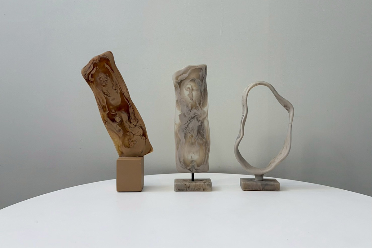 こちらはすべてポリレジンでつくられたアートオブジェです。