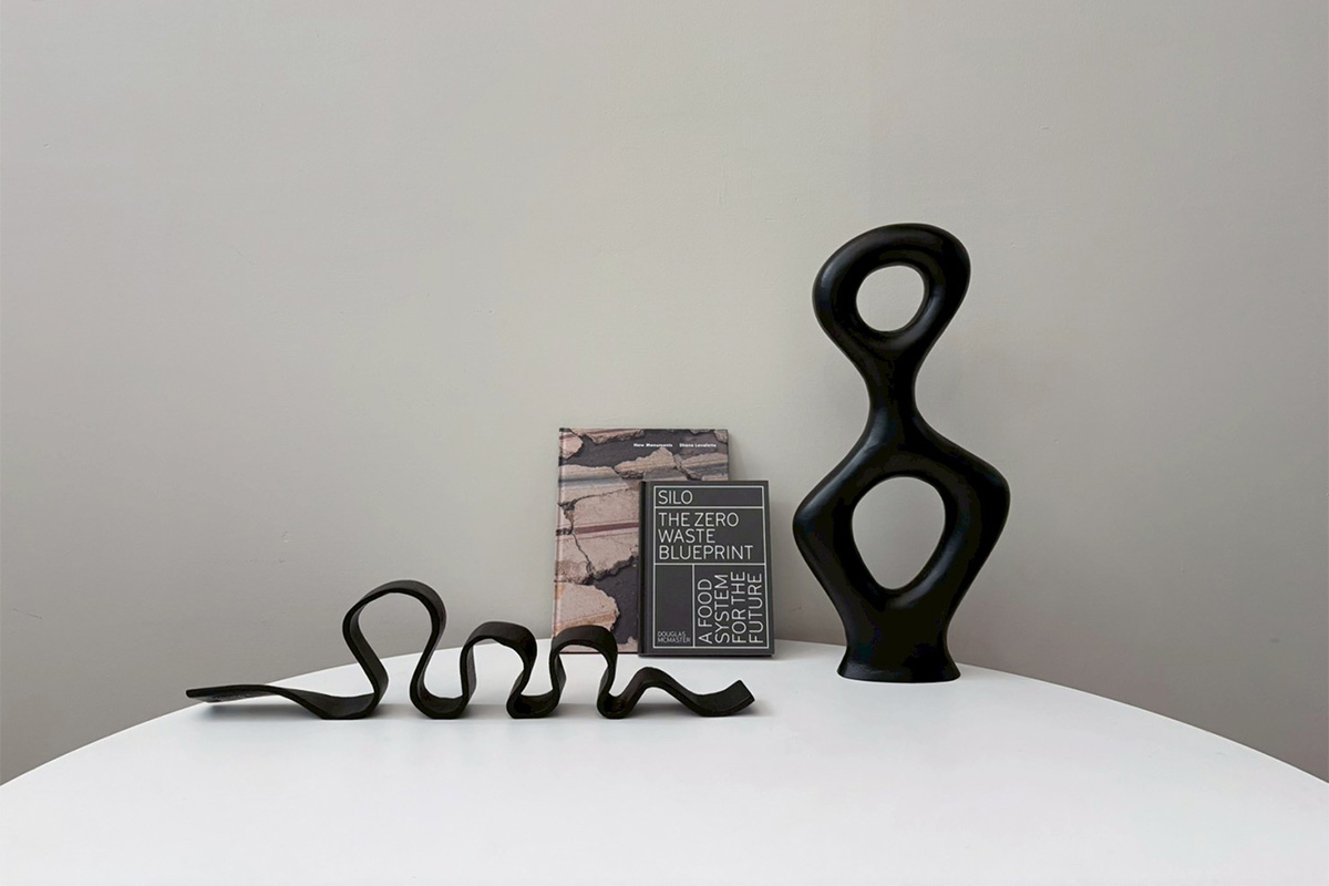 右側のブラックオブジェは、なだらかな曲線と曲面で構成されたデザイン。