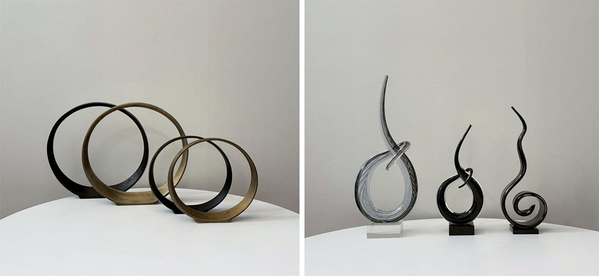 どちらのアイテムも色違い・サイズ違いをご用意しており、ガラスオブジェはデザイン違いも展開しています。空間のテイストやお好みに合わせて、組み合わせをお楽しみください。