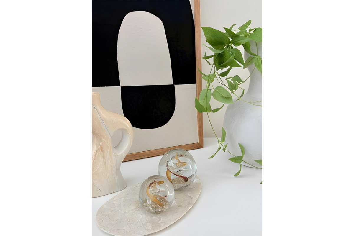 トレーの形状によっては、オブジェと一緒に飾るのも良い方法です。