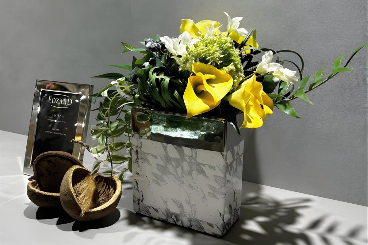 ただし注意したい点が、オブジェやグリーンを入れるフラワーベースのデザインです。