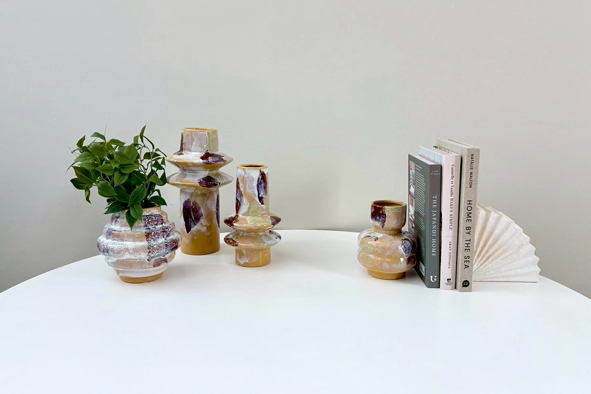 サイズとフォルムの異なる4種を展開しているので、並べて飾り、色の流れの違いを楽しんでみてはいかがでしょうか。